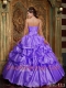 Sweetheart Purple Taffeta and Tulle Lace-up Appliques Best Quinceanera Dresses Ball Gown