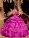 Sweetheart Quinceanera Dresses Ball Gown Strapless Hot Pink Appliques Sweetheart Taffeta