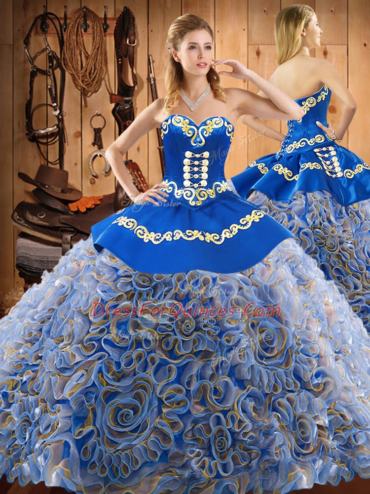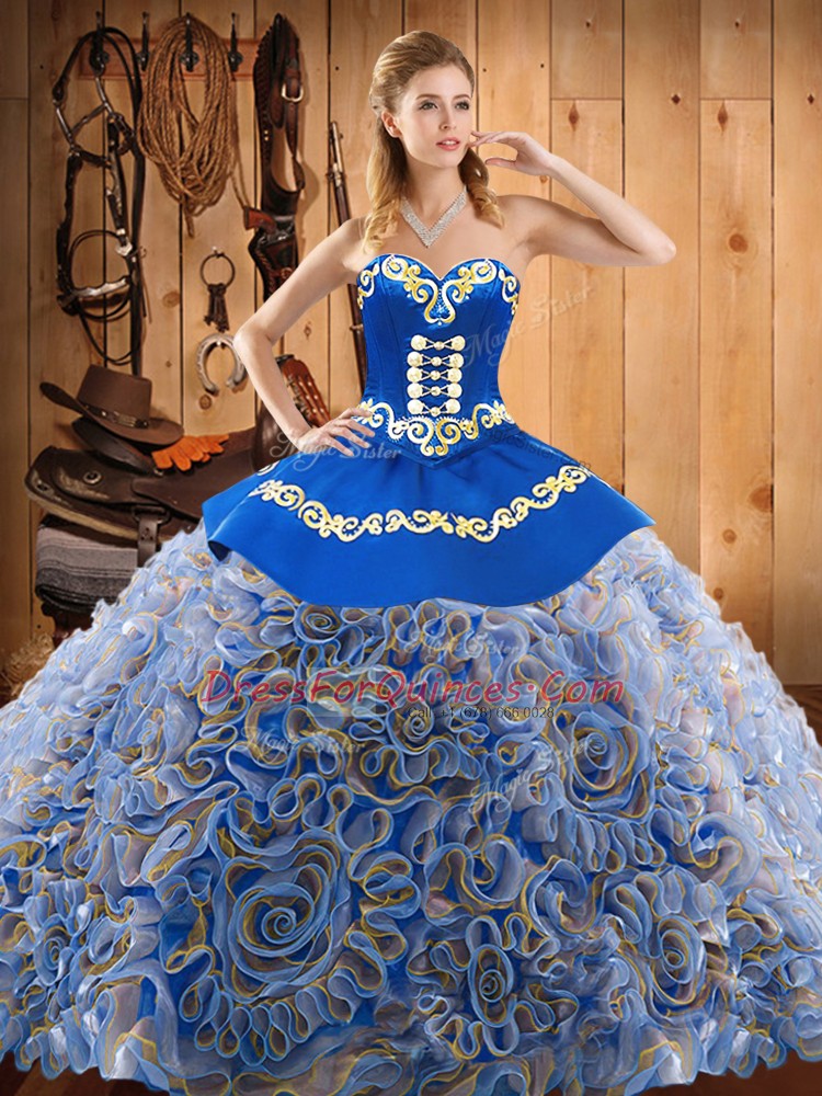 Sweetheart Sleeveless Quinceanera Dress Sweep Train Embroidery Multi-color Fabric With Rolling Flowers