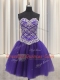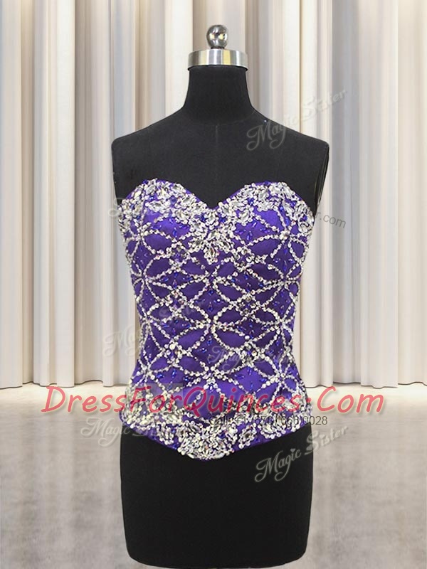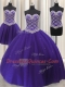 Three Piece Purple Lace Up Quince Ball Gowns Beading and Sequins Sleeveless Floor Length
