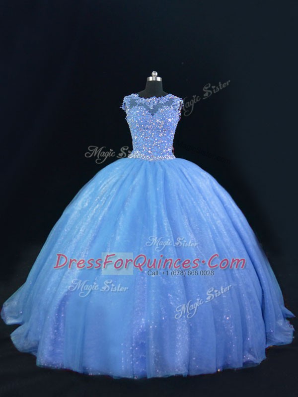 Tulle and Sequined Sleeveless Ball Gown Prom Dress and Beading