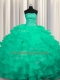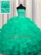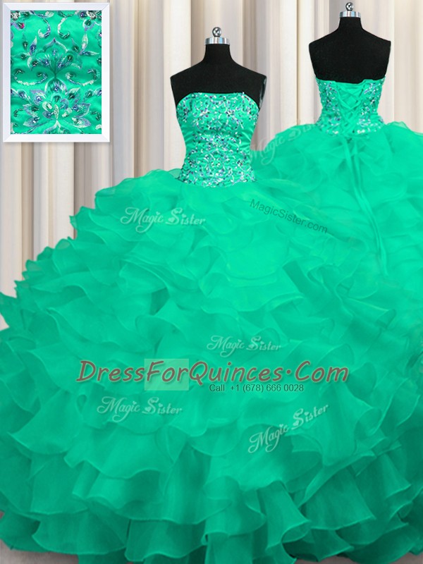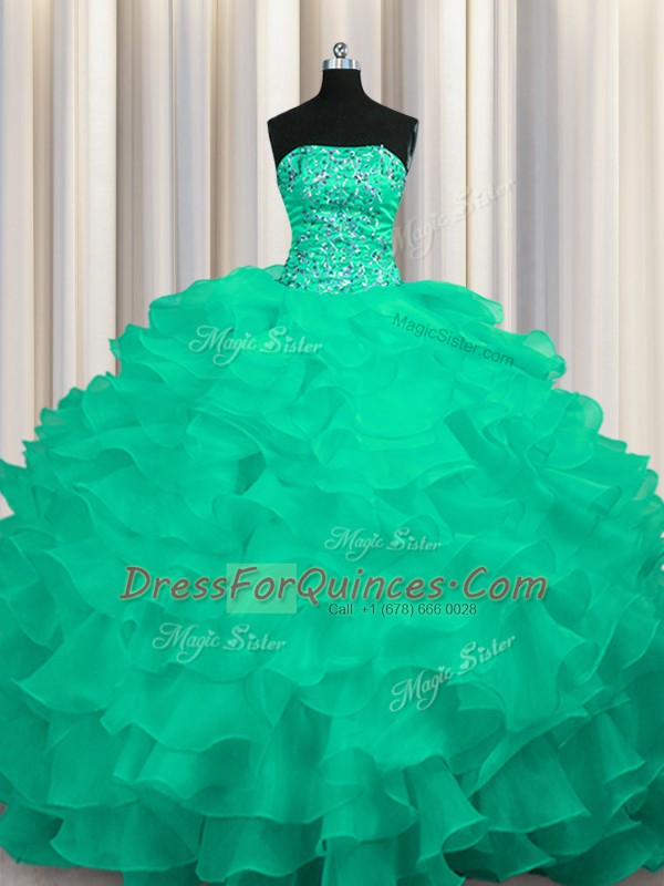 Turquoise Organza Lace Up Sweet 16 Dress Sleeveless Sweep Train Beading and Ruffles