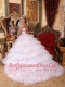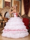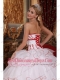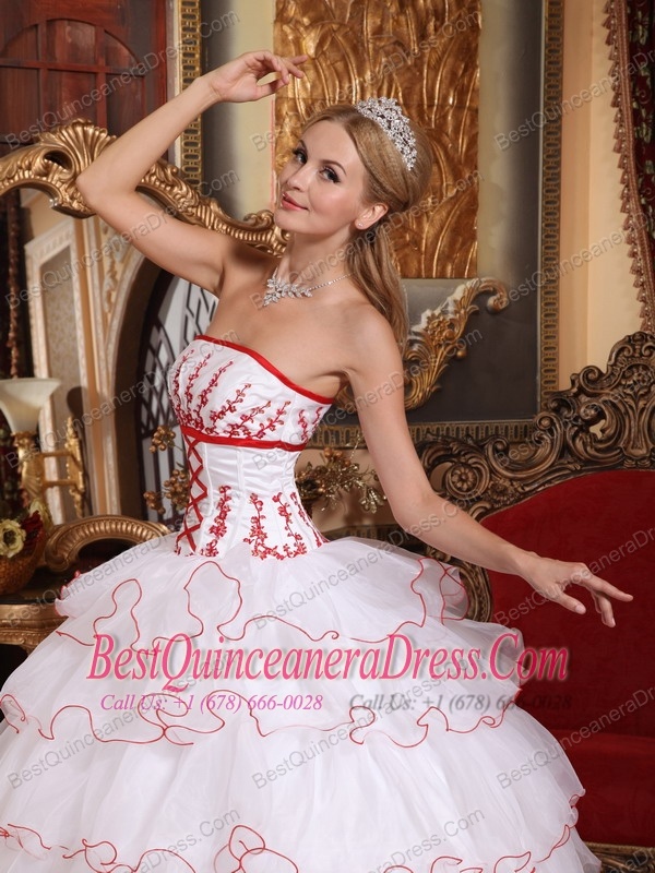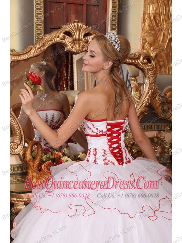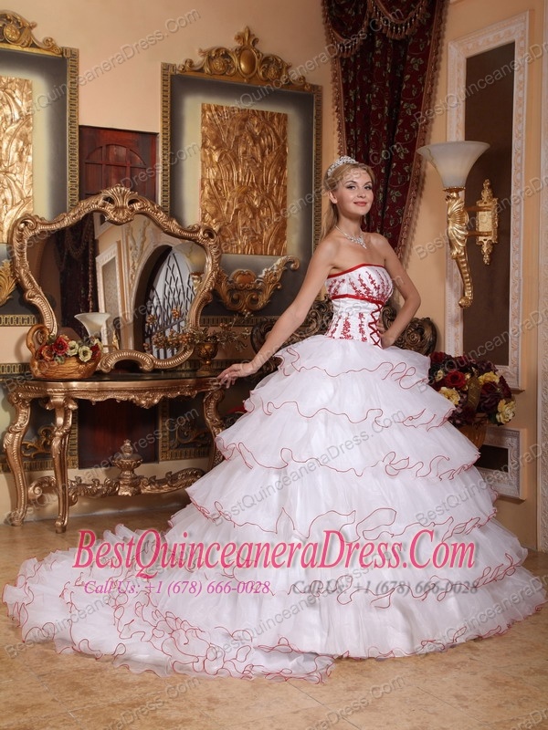 White Ball Gown Strapless Detachable Train Organza Appliques Quinceanera Dress