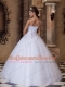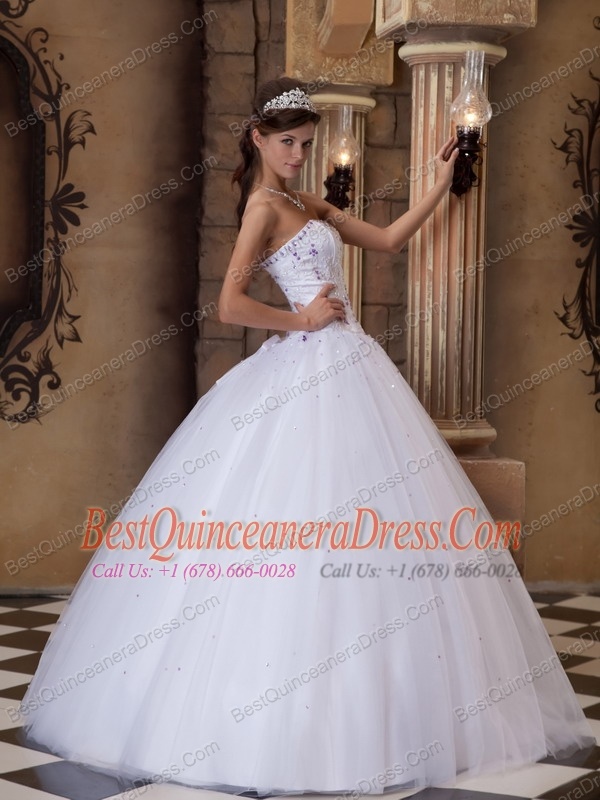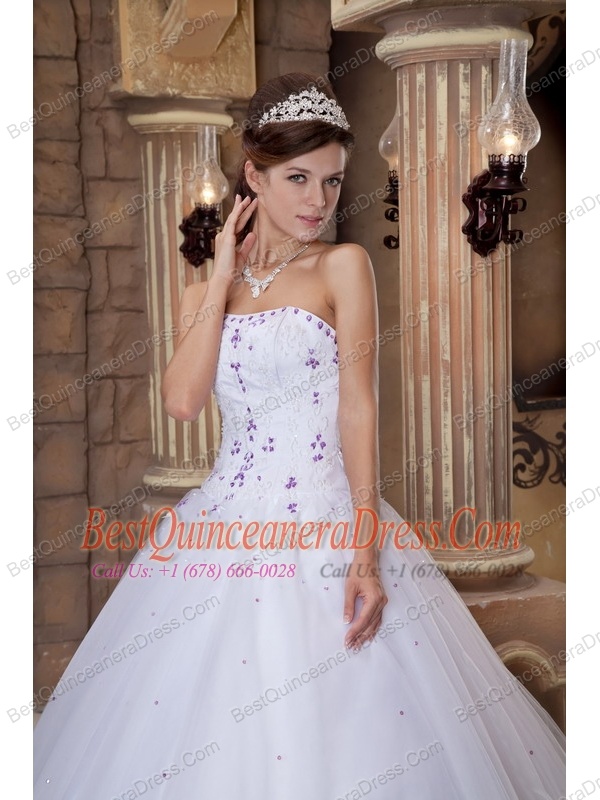 White Ball Gown Strapless Floor-length Satin and Tulle Embroidery Quinceanera Dress