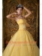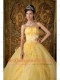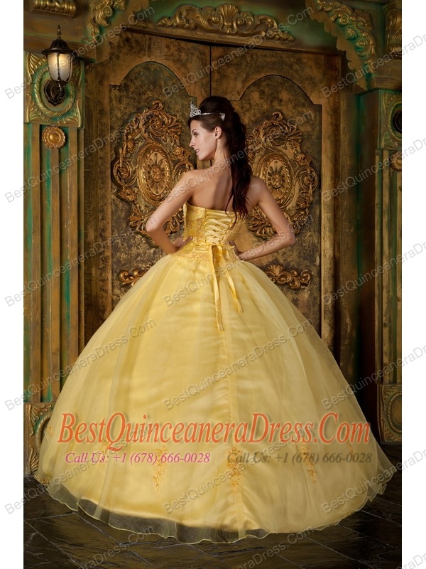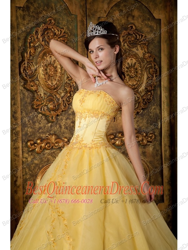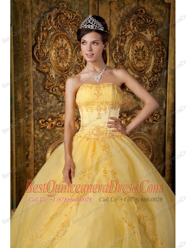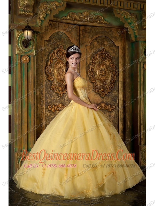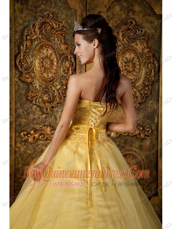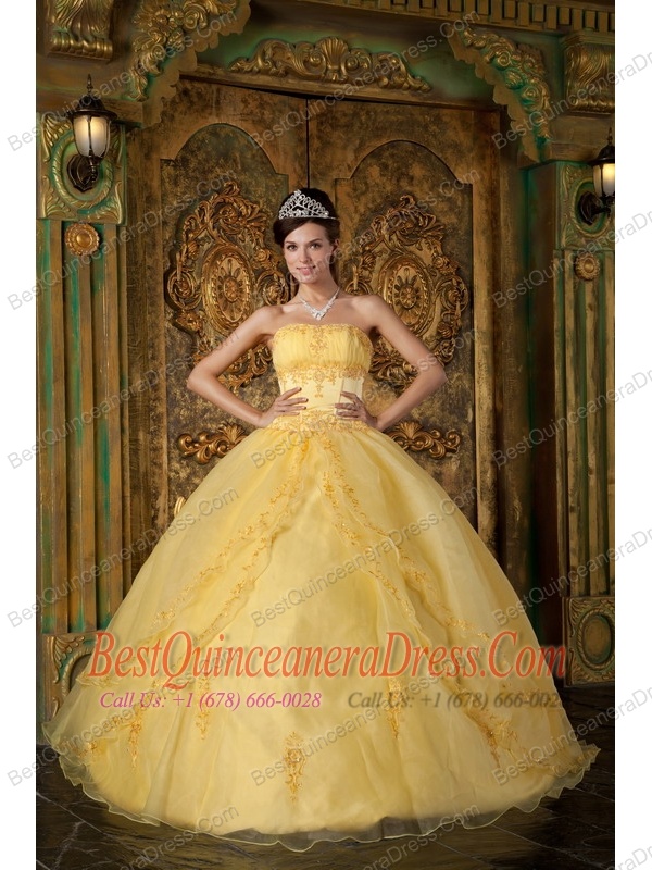 Yellow Ball Gown Strapless Floor-length Appliques Organza Quinceanera Dress