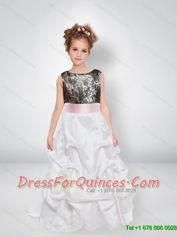 Sweet A Line Scoop Camo Flower Girl Dresses with Bowknot