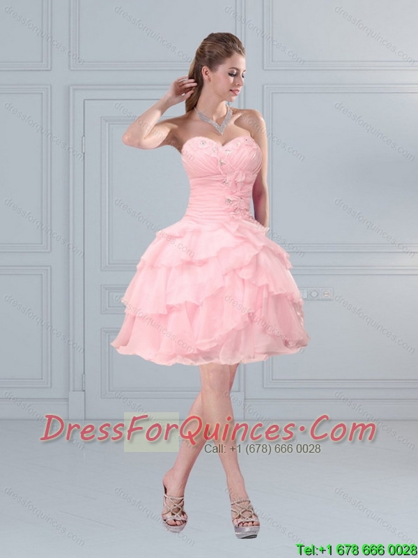 2015 Cute Baby Pink Sweetheart Cheap Dama Dresses with Ruffled Layers and Beading