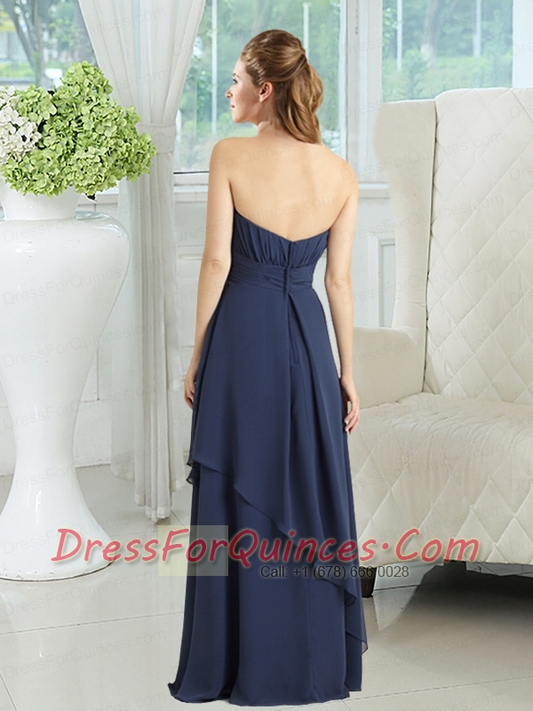 2015 Navy Blue Sweetheart Empire Dama Dress with Ruching