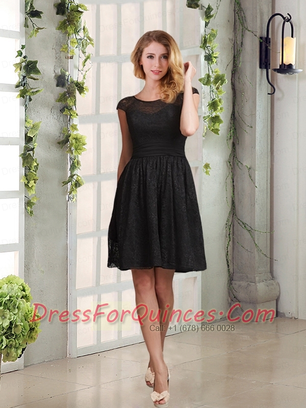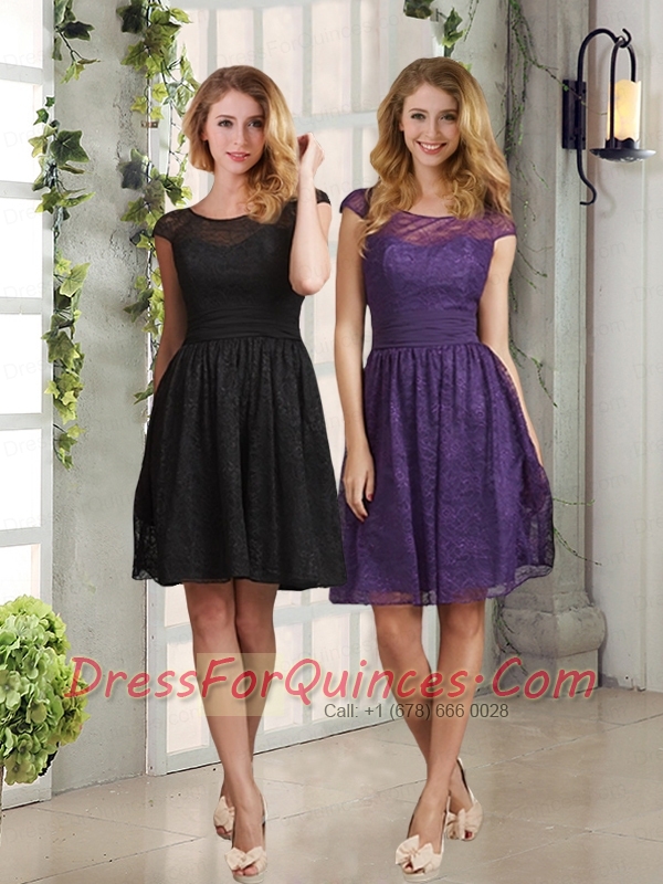 2015 New Style Bateau Lace Dama Dress with Cap Sleeves