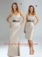 2015 Ruching and Belt Sweetheart Grey Dama Dress with Floor Length