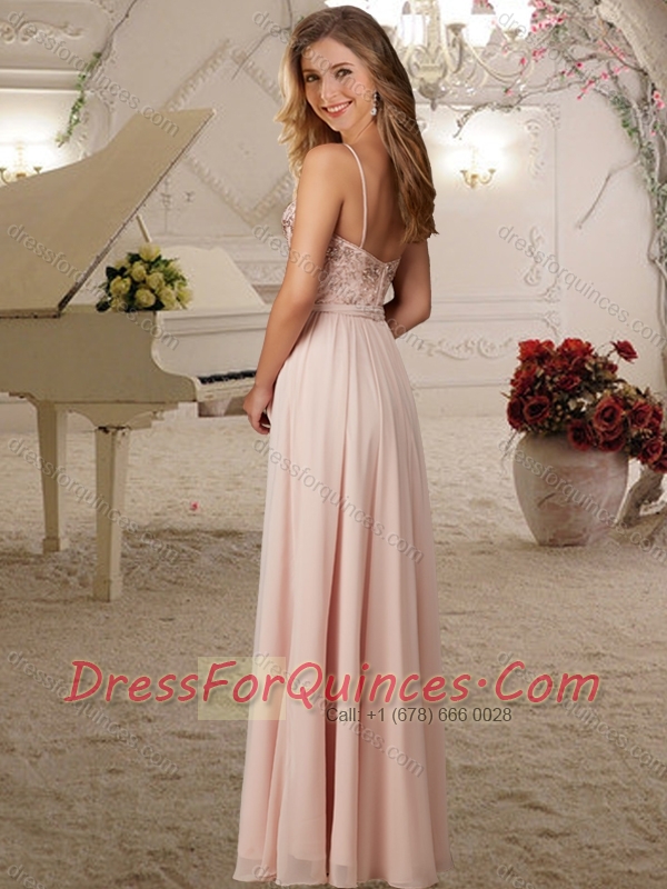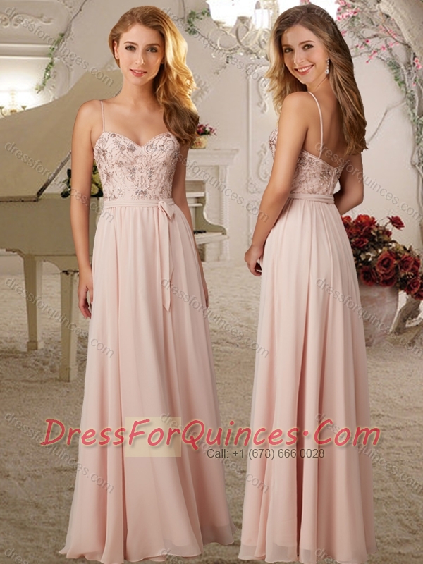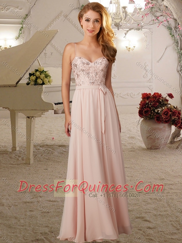 Artistic Applique Empire Baby Pink Dama Dress with Spaghetti Straps
