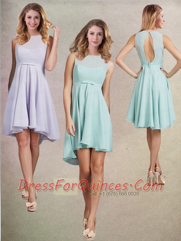 Belt Chiffon Elegant Bateau Dama Dress for 2015
