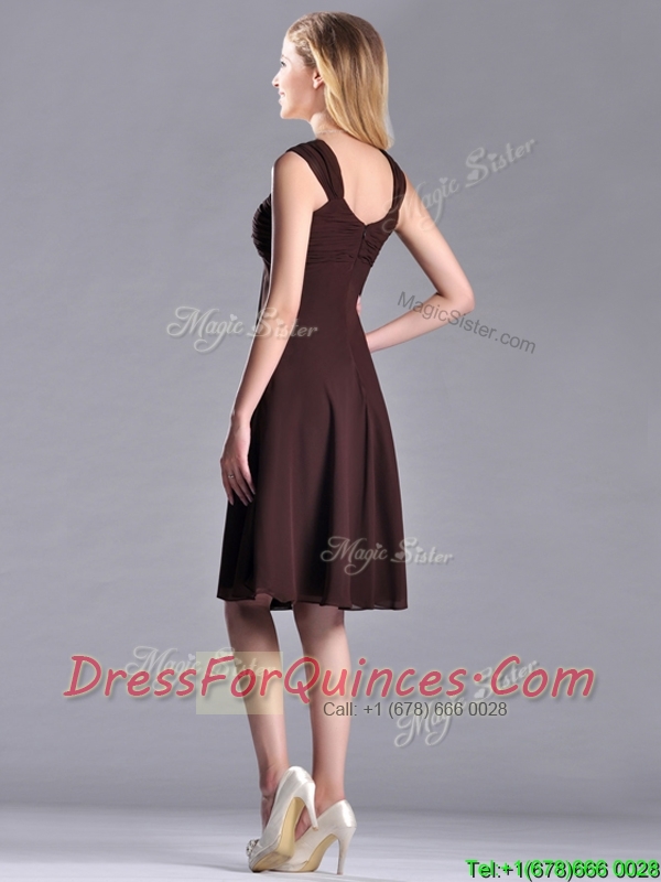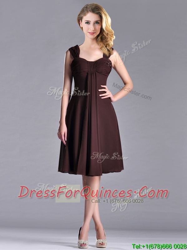 Best Selling Empire Ruched Brown Dama Dress with Wide Straps