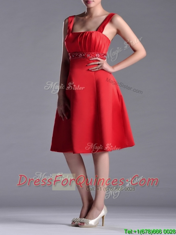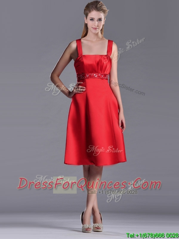 Best Selling Square Beaded Decorated Waist Dama Dress in Knee Length