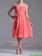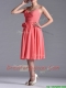 Best Spaghetti Straps Watermelon Dama Dress with Ruching and Bowknot