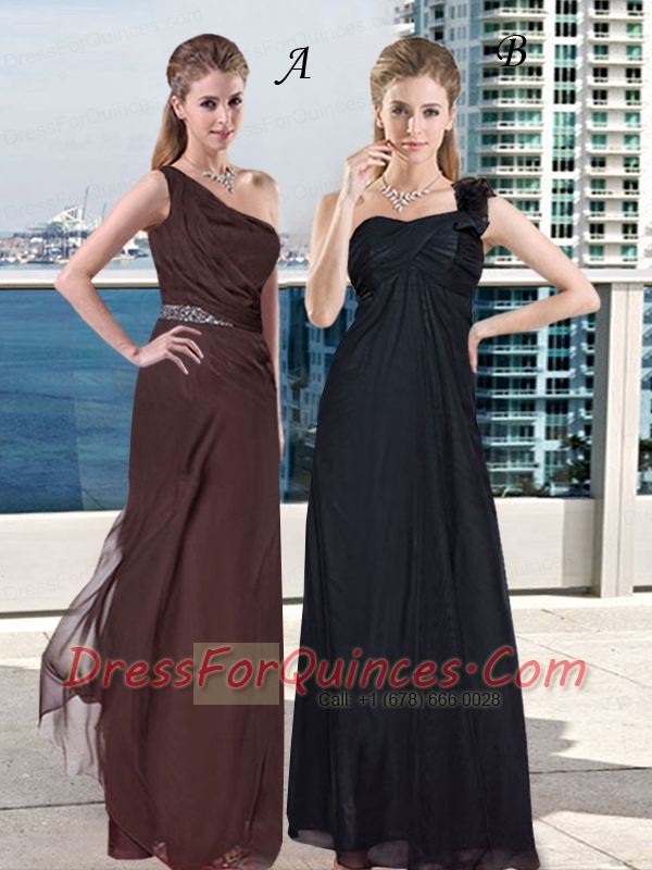 Black One shoulder 2015 Luxurious Dama Dress with Floor Length
