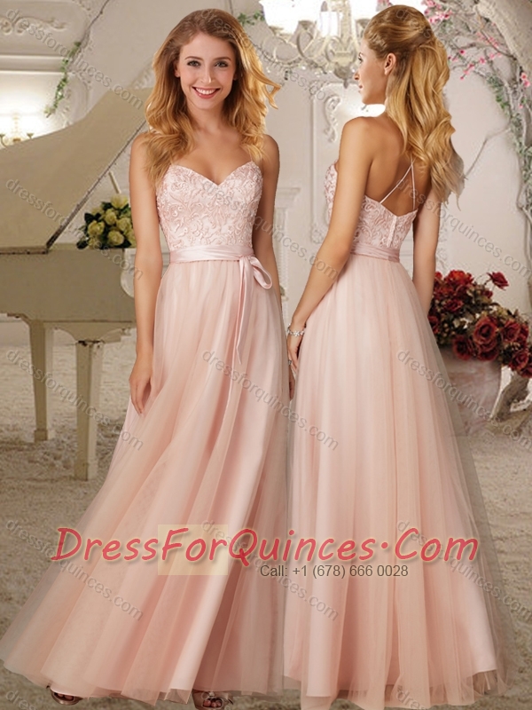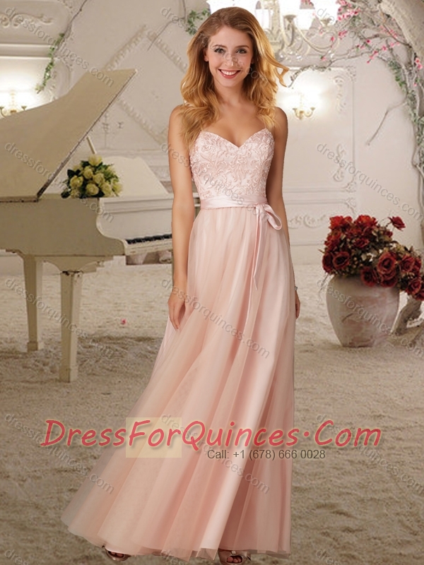 Cheap Elegant Belted and Applique Empire Dama Dress in Baby Pink