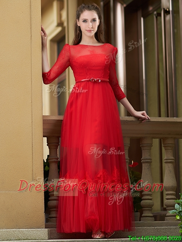 Cheap Empire Bateau Belted and Applique Dama Dresses in Ankle Length