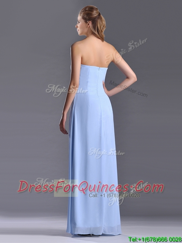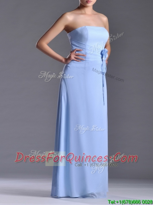 Cheap Strapless Hand Crafted Flower Long Dama Dress in Light Blue