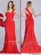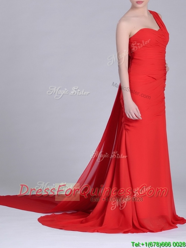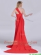 Column One Shoulder Watteau Train Coral Red Dama Dress with Side Zipper