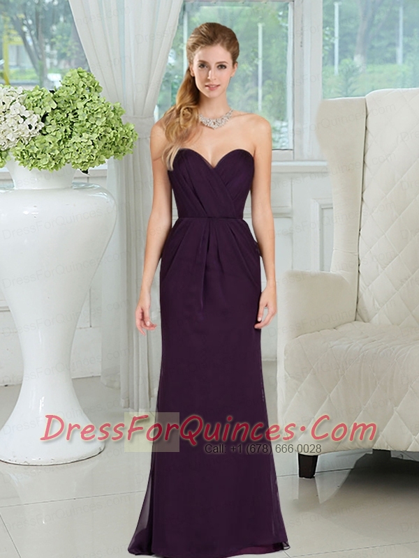 Column Ruching Floor Length 2015 Elegant Dark Purple Dama Dress