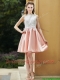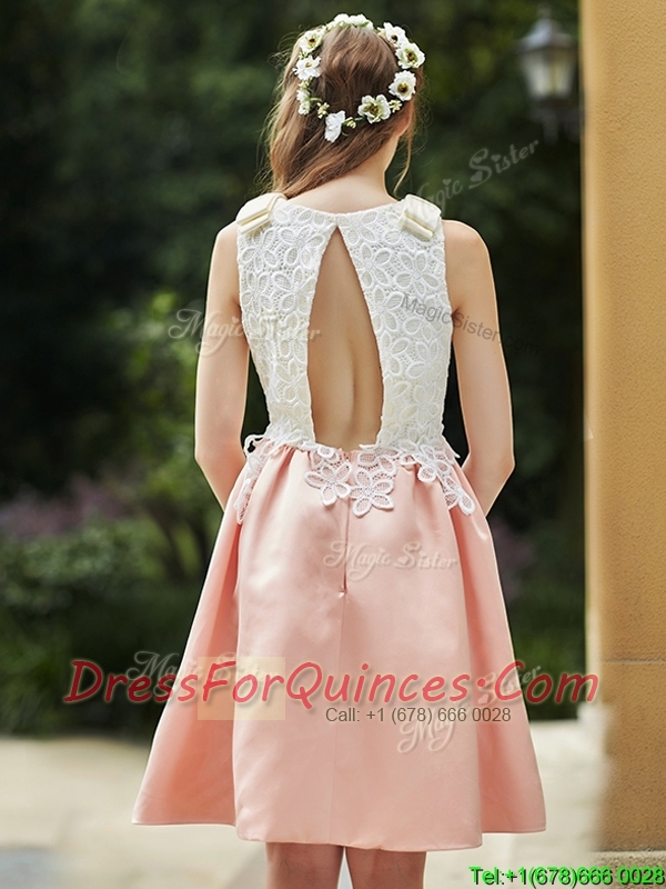 Elegant Bateau Open Back Applique Short Dama Dresses in Pink