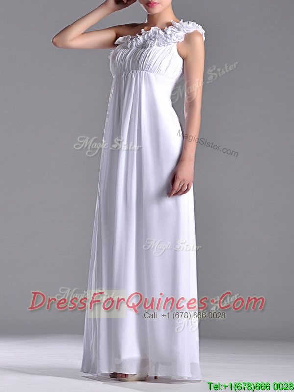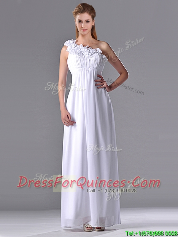 Elegant Empire Hand Crafted Side Zipper White Dama Dress with One Shoulder