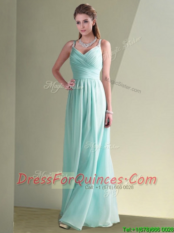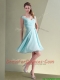 Elegant Empire Ruched Decorated Chiffon Dama Dress in Aqua Blue