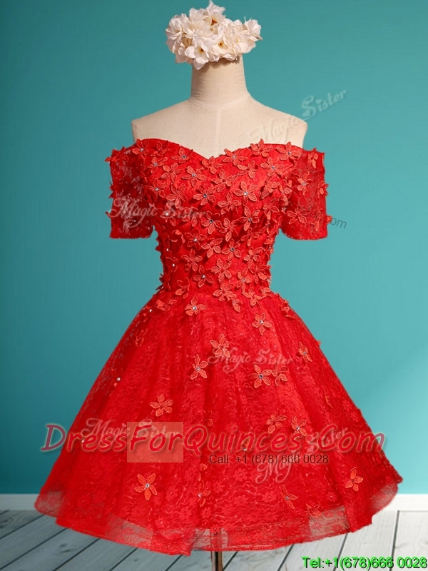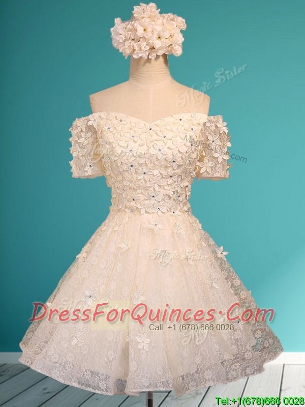 Elegant Off the Shoulder Short Sleeves Dama Dresses with Appliques and Beading