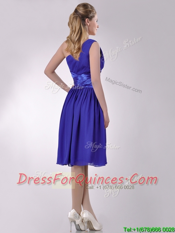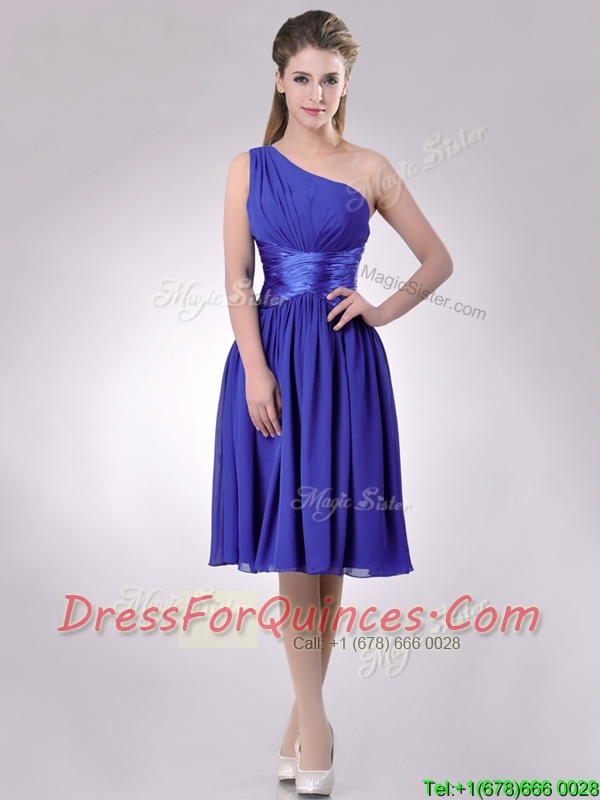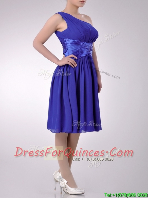 Elegant One Shoulder Chiffon Blue Dama Dress with Side Zipper