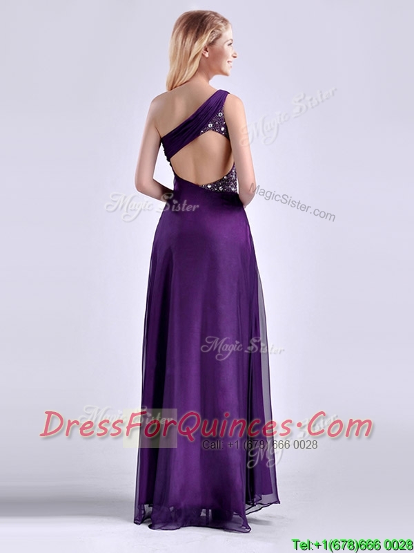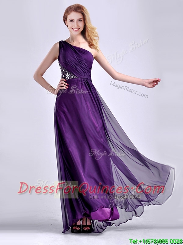 Elegant One Shoulder Criss Cross Purple Dama Dress with Beading