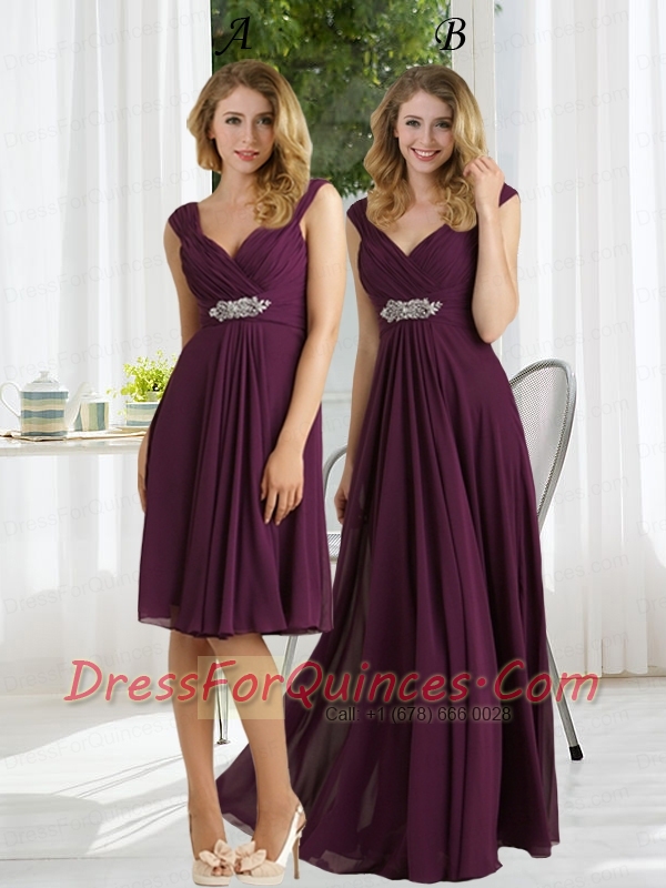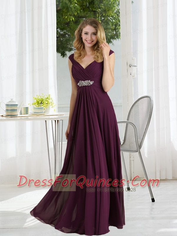 Empire 2015 Dark Purple Ruching Dama Dress with Cap Sleeves