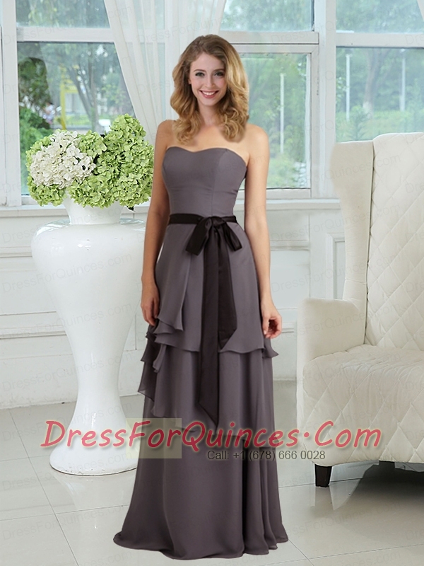 Empire Ribbons Floor Length Chiffon Dama Dresses