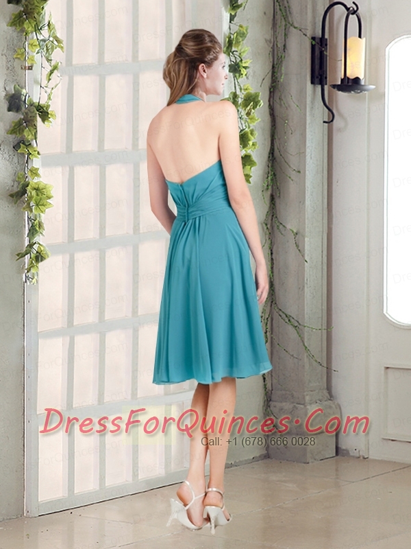 Empire Ruffles Turquoise 2015 Beautiful Dama Dress with Halter