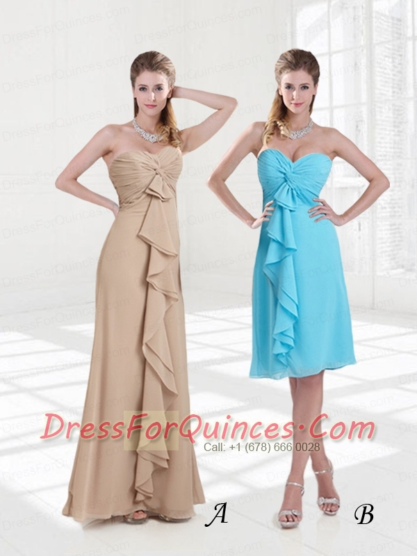 Empire Sweetheart Ruching Knee Length 2015 Baby Blue Dama Dresses