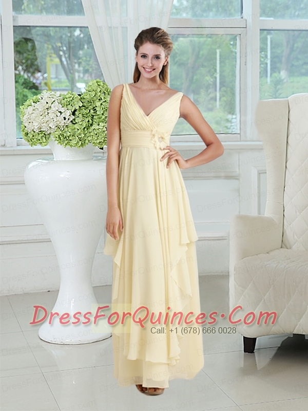 Empire V Neck Chiffon Dama Dress with Appliques and Ruching