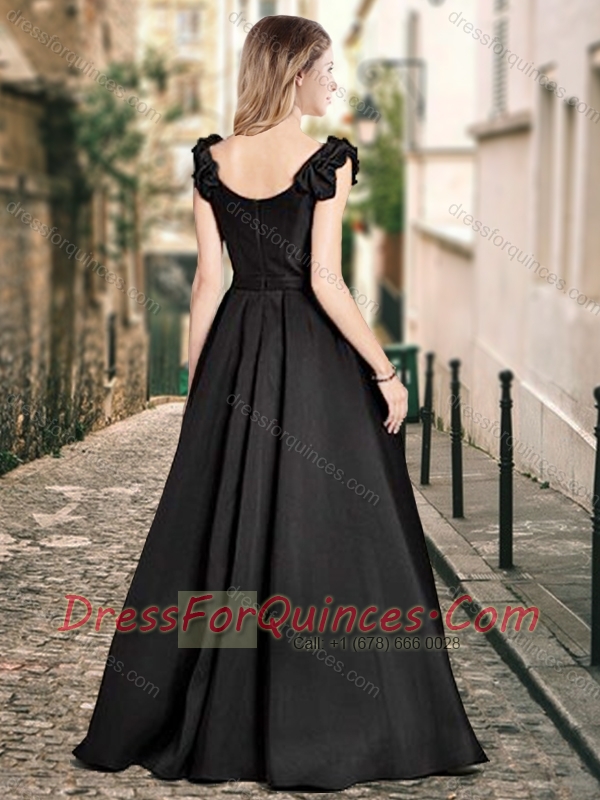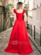 Exclusive Cap Sleeves Satin Dama Dress with Deep V Neckline