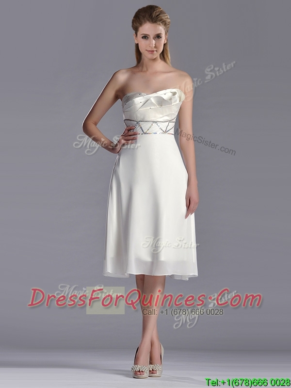 Fashionable Beaded Decorated Waist Chiffon Dama Dress in Tea Length