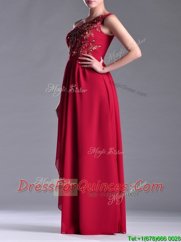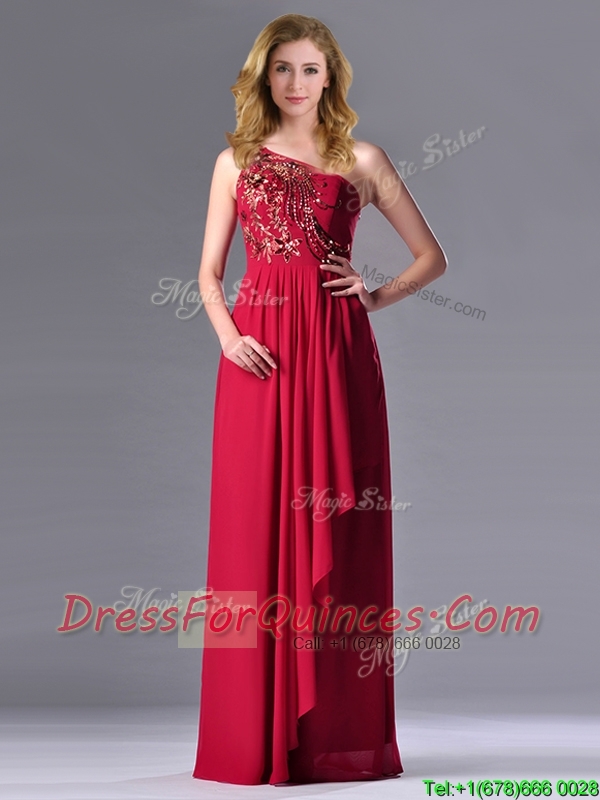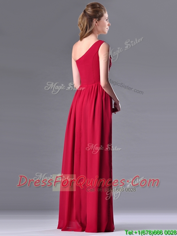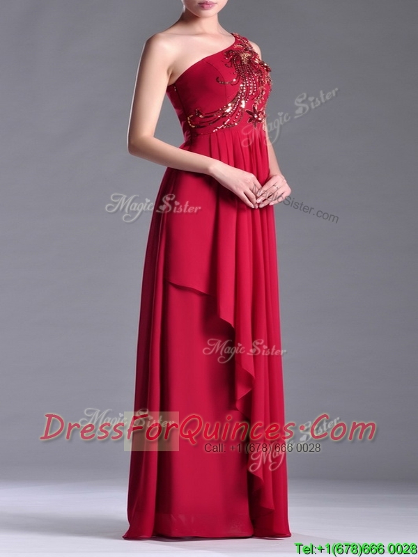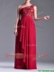 Fashionable Empire One Shoulder Sequins Red Dama Dress with Side Zipper