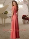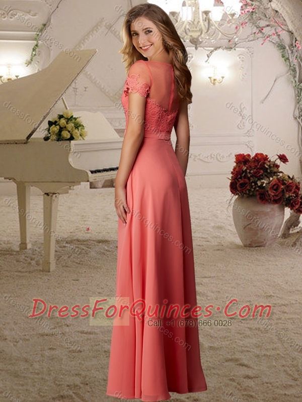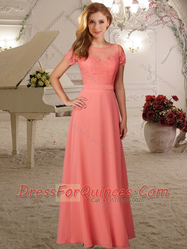 Fashionable See Through Bateau Watermelon 2000Dress with Lace