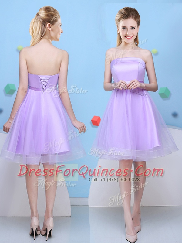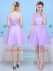 Flare Scoop Sleeveless Quinceanera Court Dresses Knee Length Bowknot Lavender Tulle