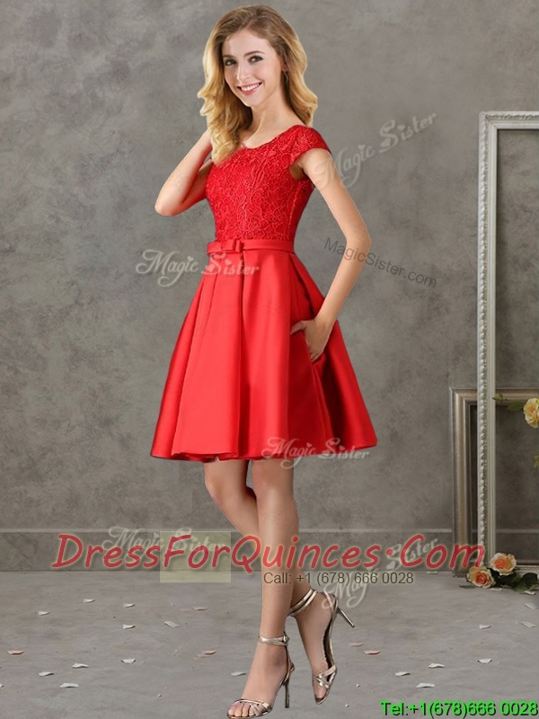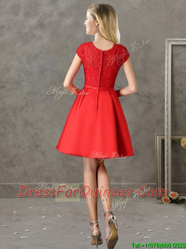 Gorgeous Scoop Cap Sleeves Red Dama Dresses with Lace and Bowknot