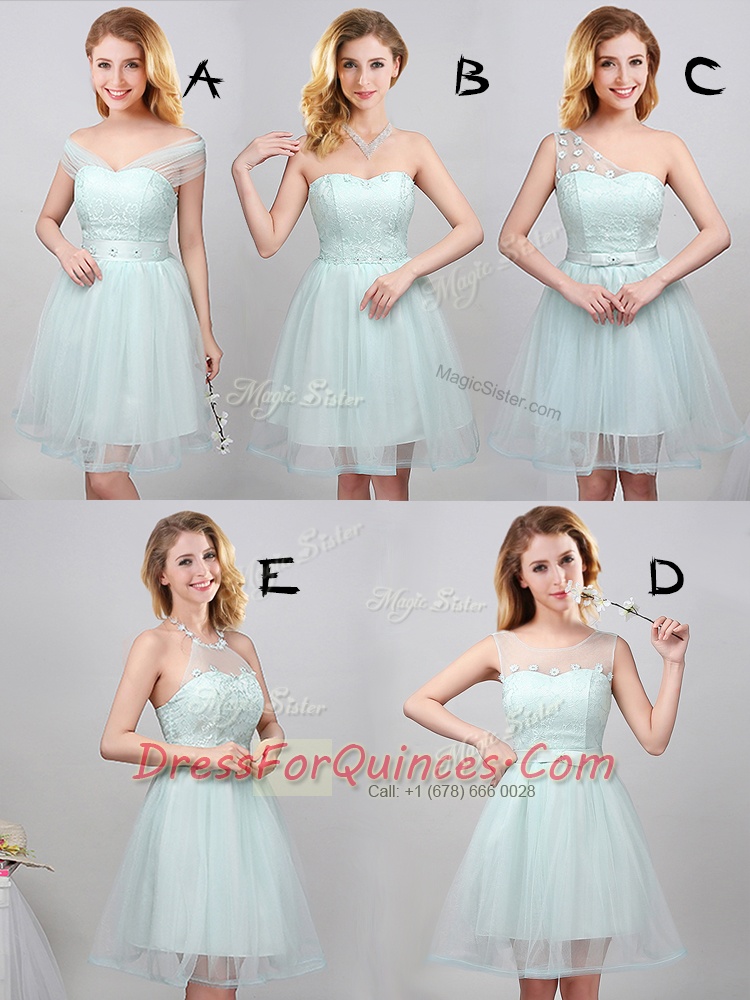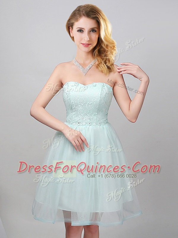 Great Apple Green Sweetheart Neckline Lace and Appliques Quinceanera Dama Dress Sleeveless Lace Up
