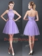 Halter Top Sleeveless Damas Dress Mini Length Lace and Appliques Lavender Tulle