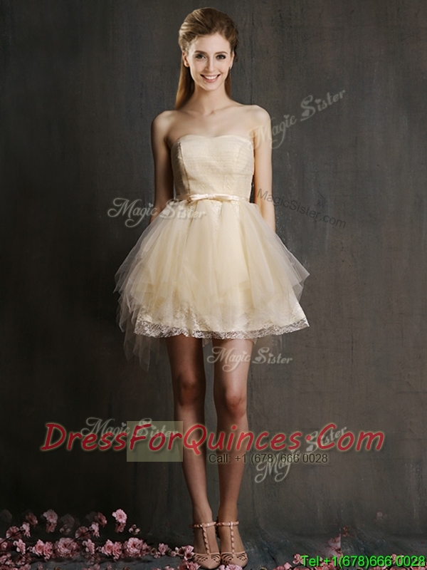 Hot Sale Mini Length Tulle Dama Dresses with Belt