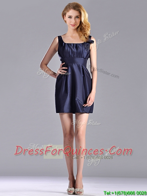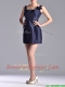Hot Sale Square Handcrafted Flower Short Dama Dress in Navy Blue