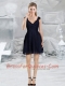 Lace Empire V Neck Cap Sleeves Navy Blue Dama Dress for 2015