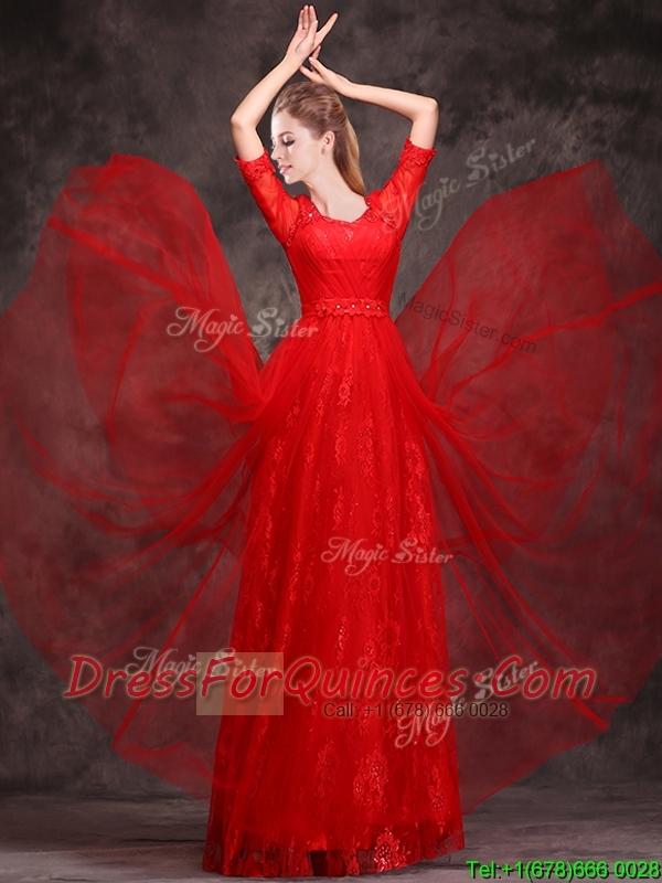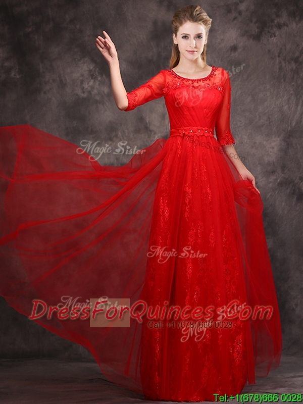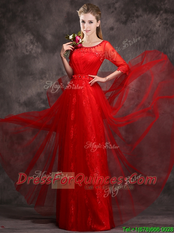 Latest Applique and Beaded Red Dama Dresses in Tulle and Lace