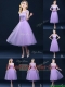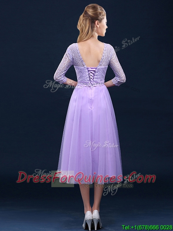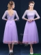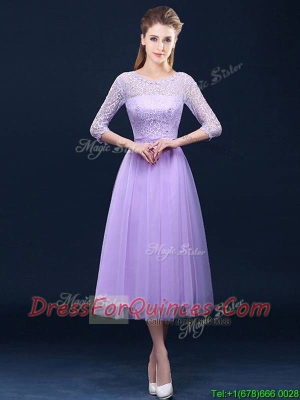 Latest Half Sleeves Tea Length Laced Dama Dresses in Lavender