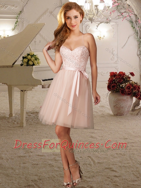 Lovely Spaghetti Straps Short Dama Dress with Belt and Appliques